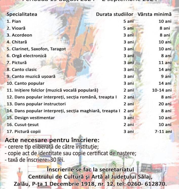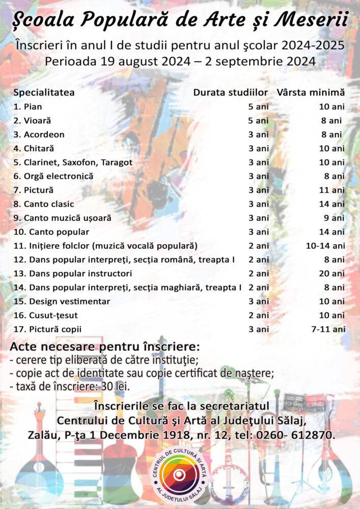 Înscrieri în anul I de studii pentru anul şcolar 2024-2025 la Școala Populară de Arte și Meserii