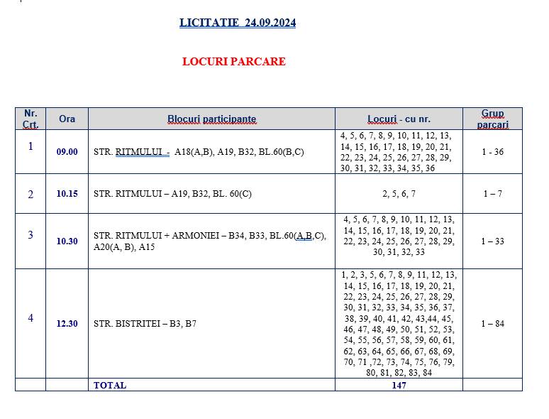 SADP Zalău organizează licitații în data de 24 septembrie, în vederea închirierii unor locuri de parcare pe străzile Ritmului și Bistriței