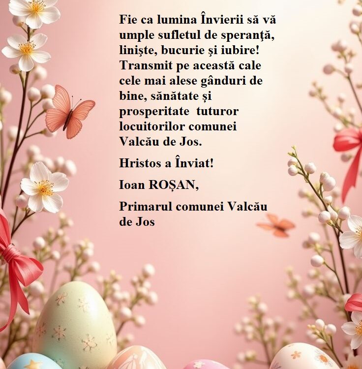 Ioan ROȘAN, Primarul comunei Valcău de Jos: -Hristos a Înviat!