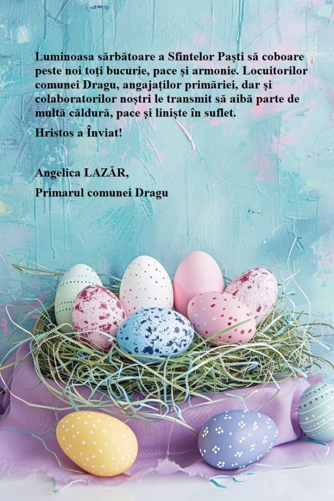 Angelica LAZĂR, Primarul comunei Dragu: -Hristos a Înviat!