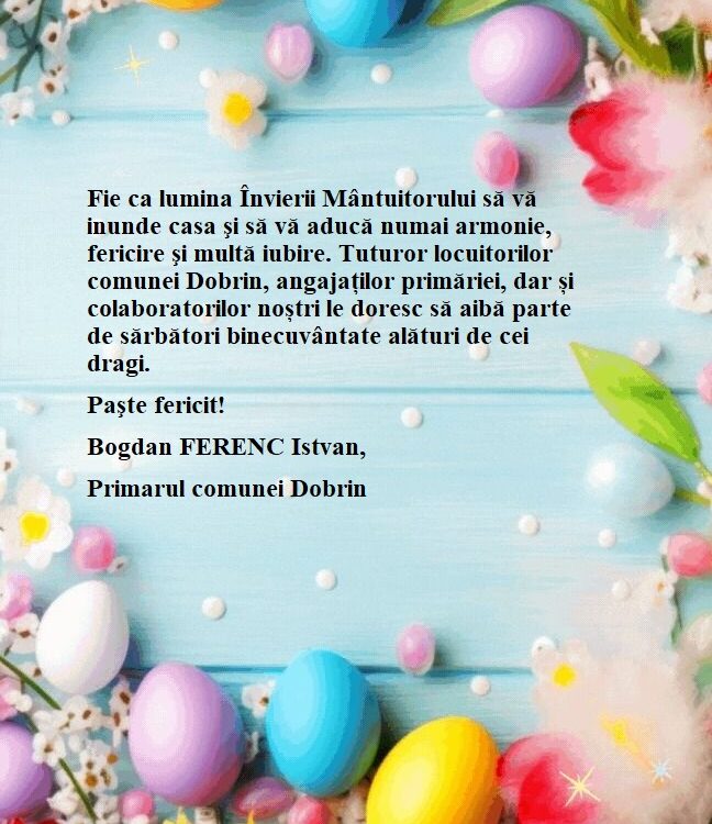 Bogdan FERENC Istvan, Primarul comunei Dobrin: -Paşte fericit!