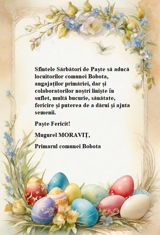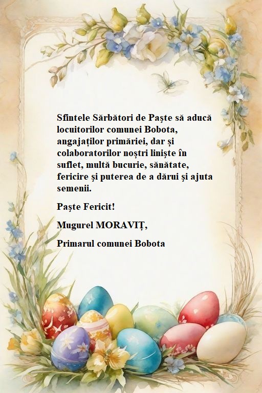 Mugurel MORAVIȚ, Primarul comunei Bobota: -Paşte Fericit!