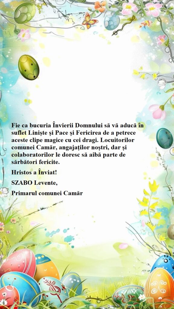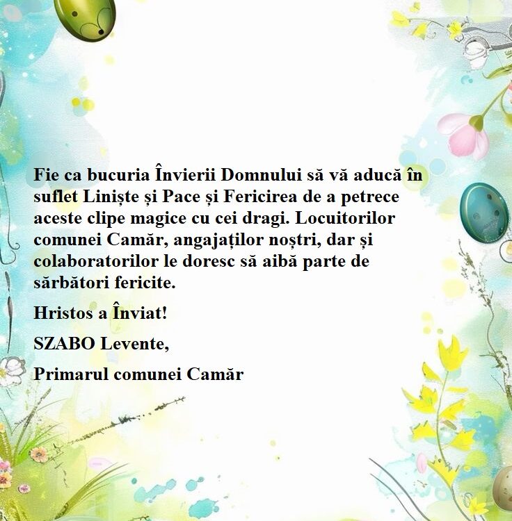 SZABO Levente, Primarul comunei Camăr: -Hristos a Înviat!