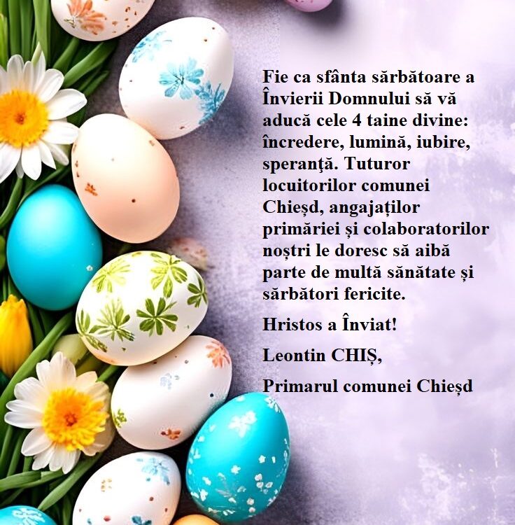 Sfintele Sărbători de Paști să reverse asupra voastră lumina credinței și bucuria vieții.Vă doresc să vă găsiți liniștea și pacea sufletească alături de cei dragi.Paște fericit […]