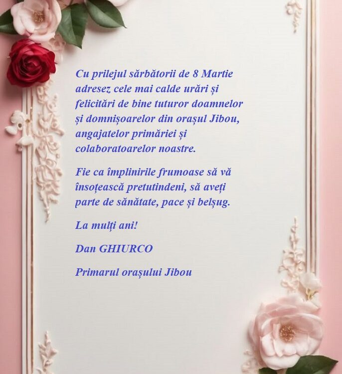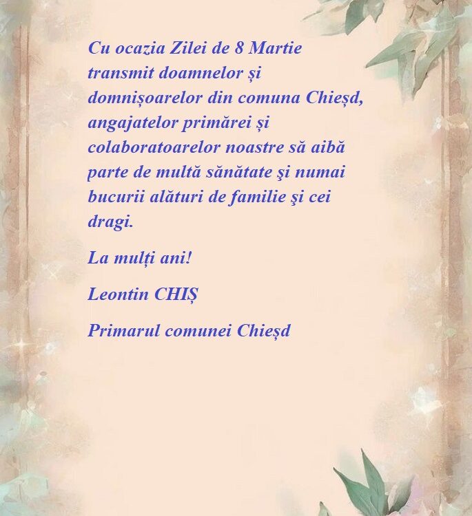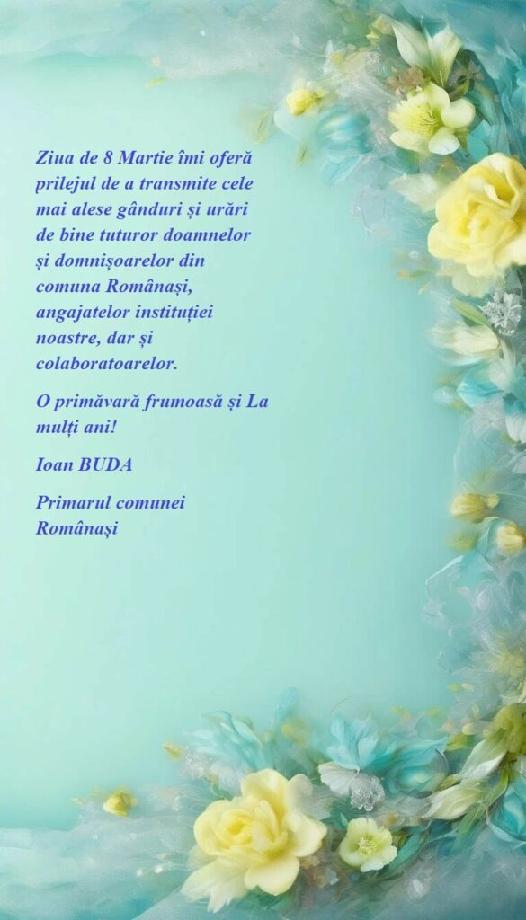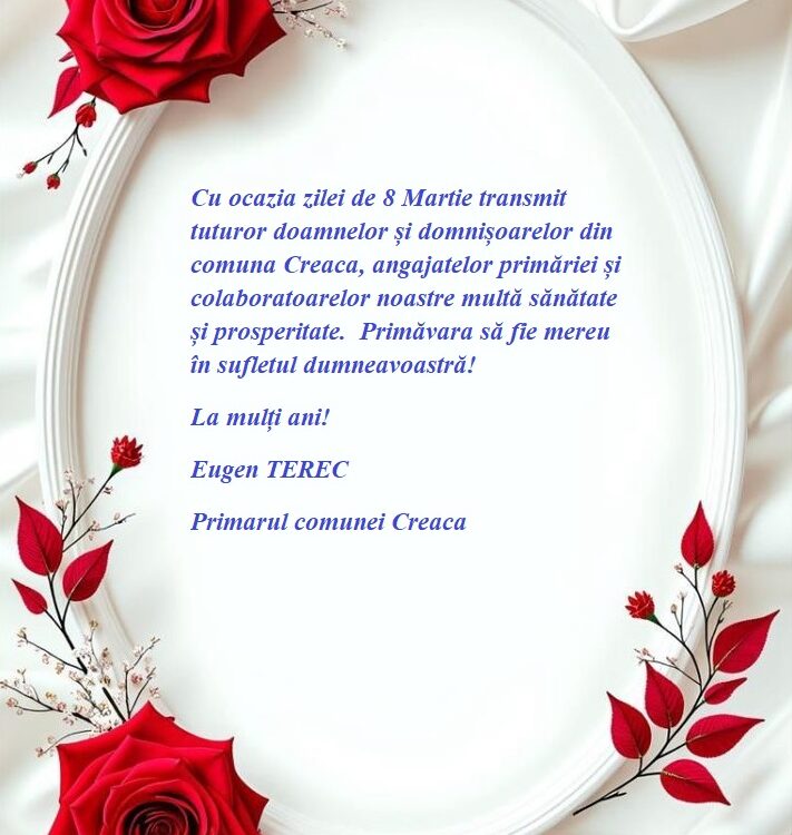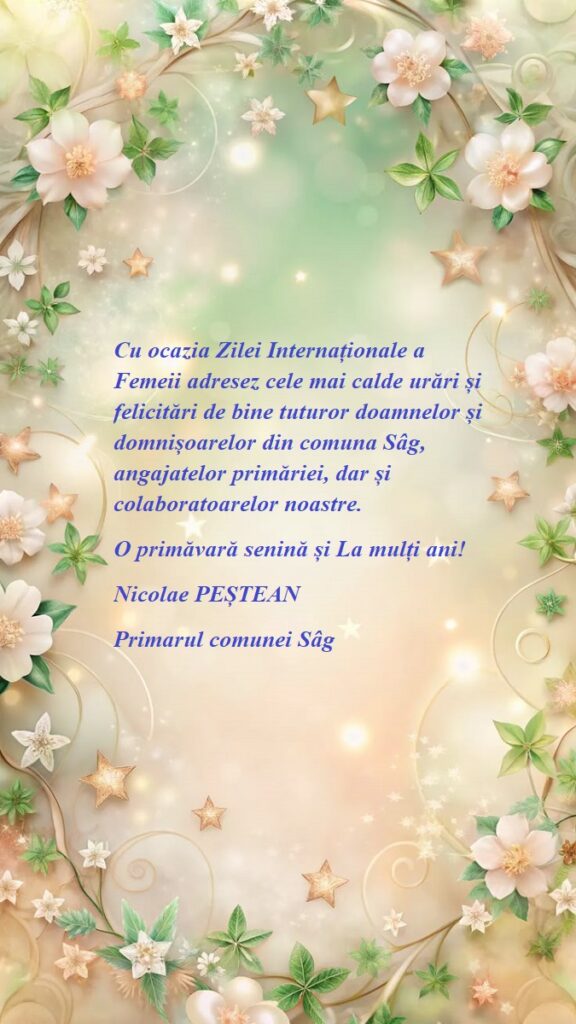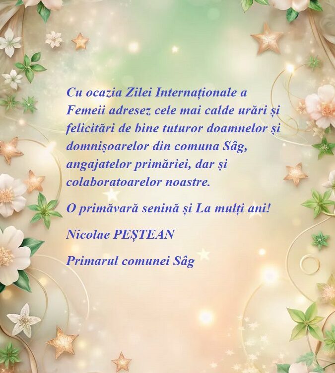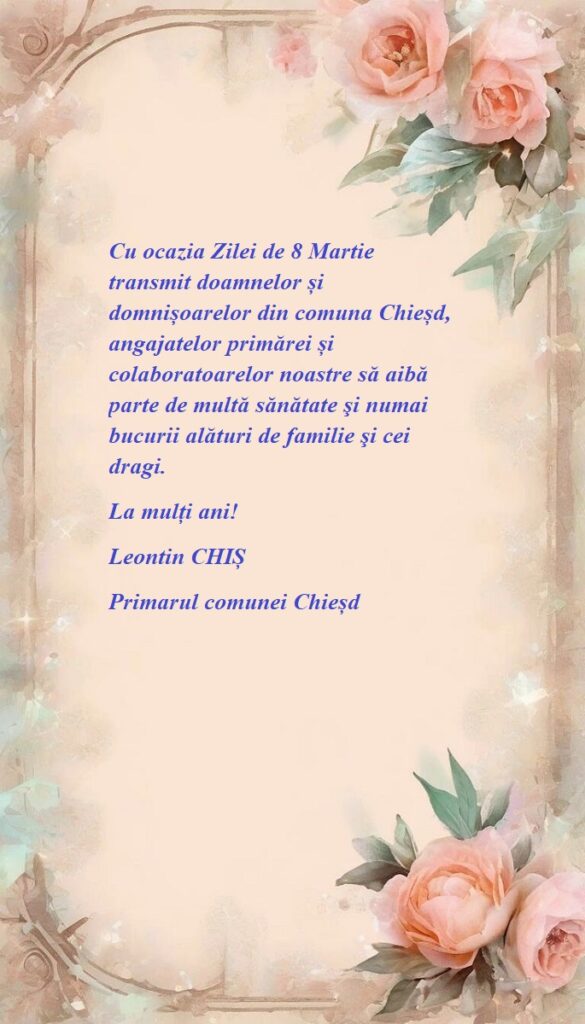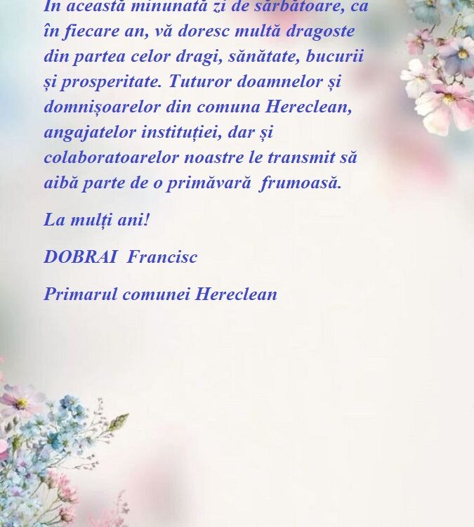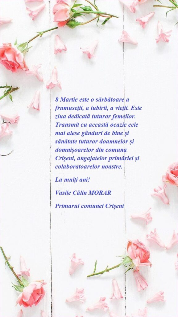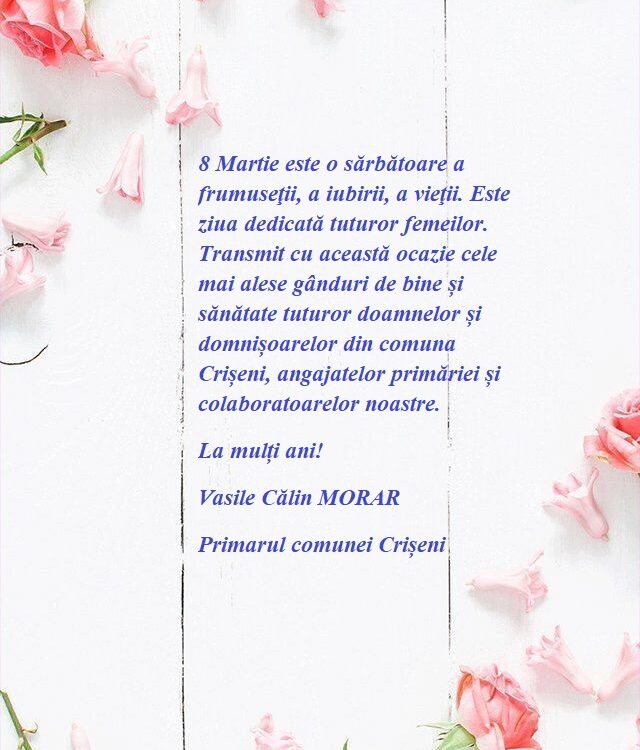 Vasile Călin MORAR Primarul comunei Crișeni: -cele mai alese gânduri de bine și sănătate tuturor doamnelor și domnișoarelor