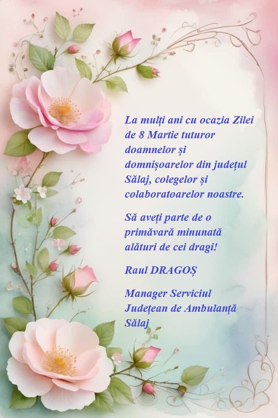 Raul DRAGOȘ Manager Serviciul Județean de Ambulanță Sălaj: -Să aveți parte de o primăvară minunată alături de cei dragi!