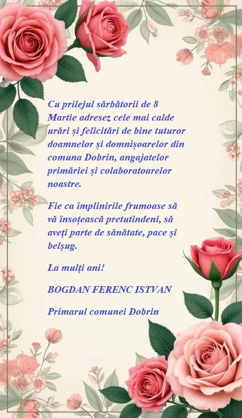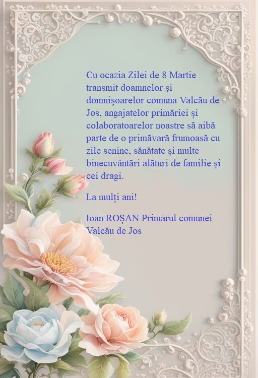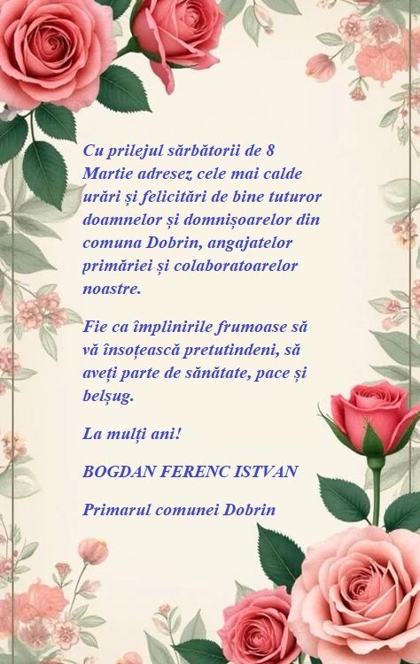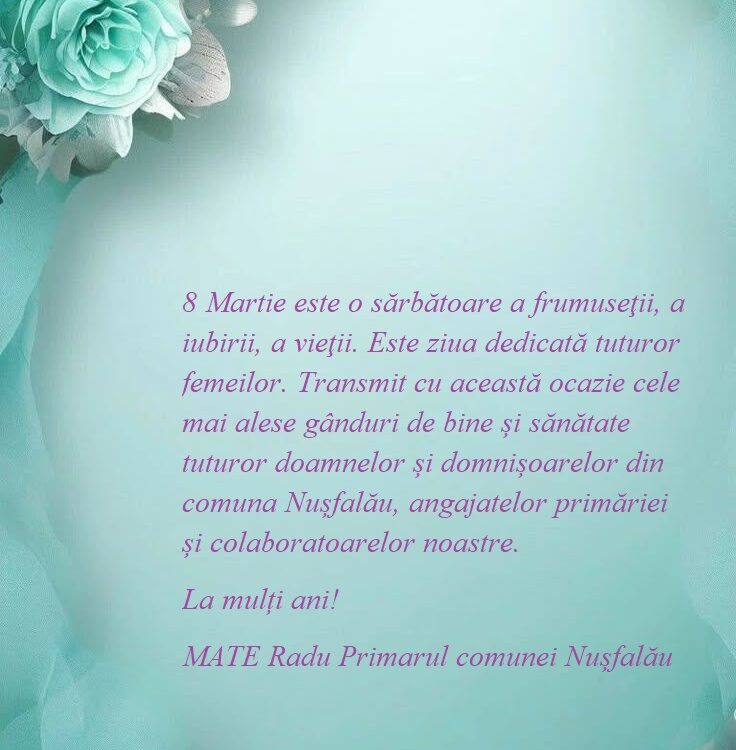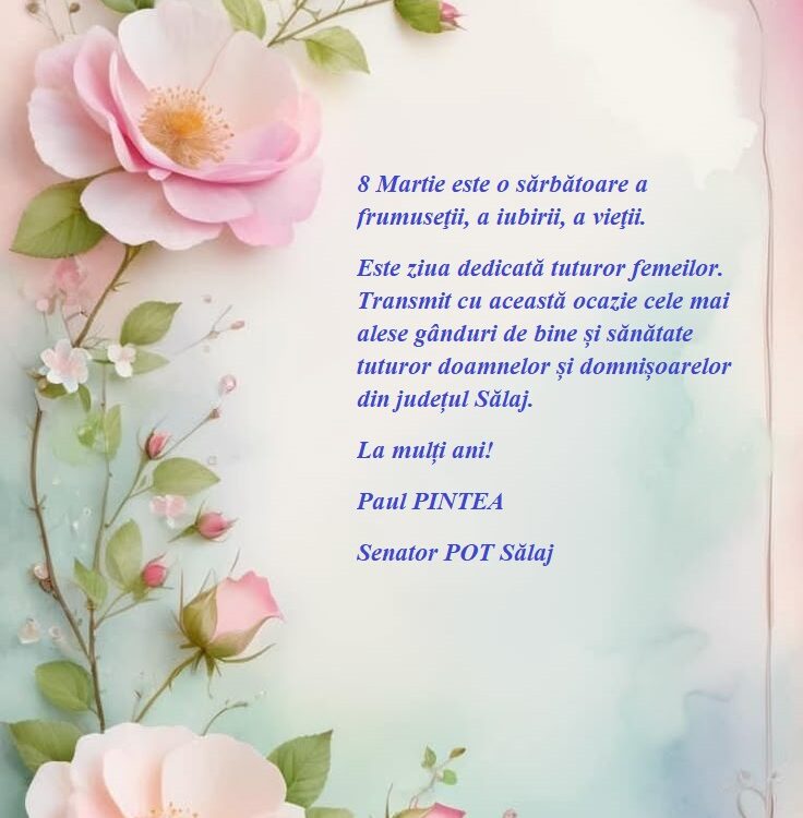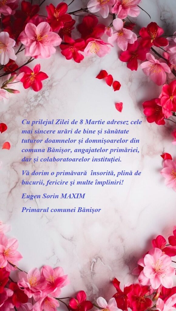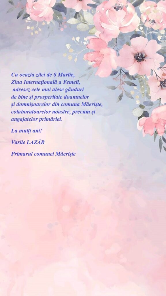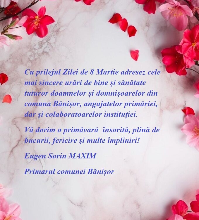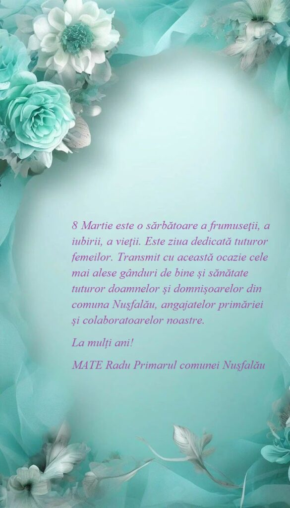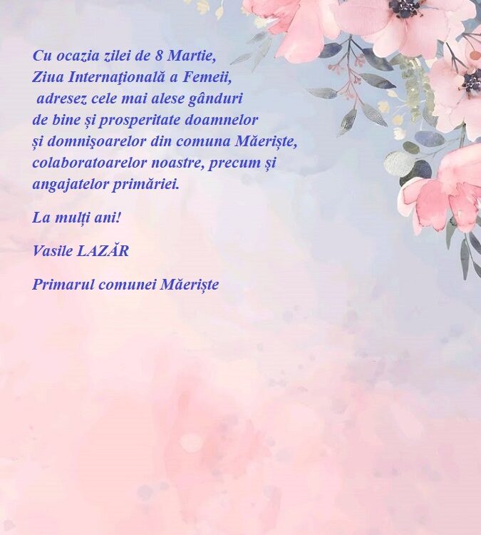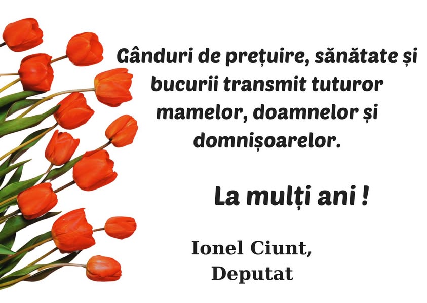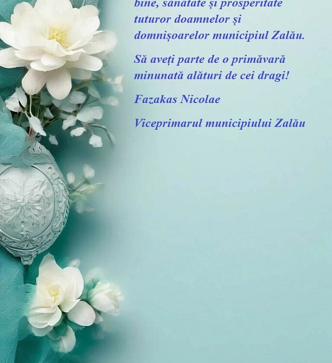 Ziua Internațională a Femeii să vă aducă sănătate și prosperitate alături de cei dragi! Transmit pe această cale cele mai alese gânduri de bine tuturor doamnelor […]