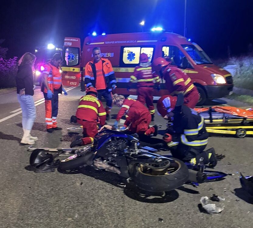 MOTOCICLISTUL ACCIDENTAT A FOST TRANSPORTAT LA SPITAL