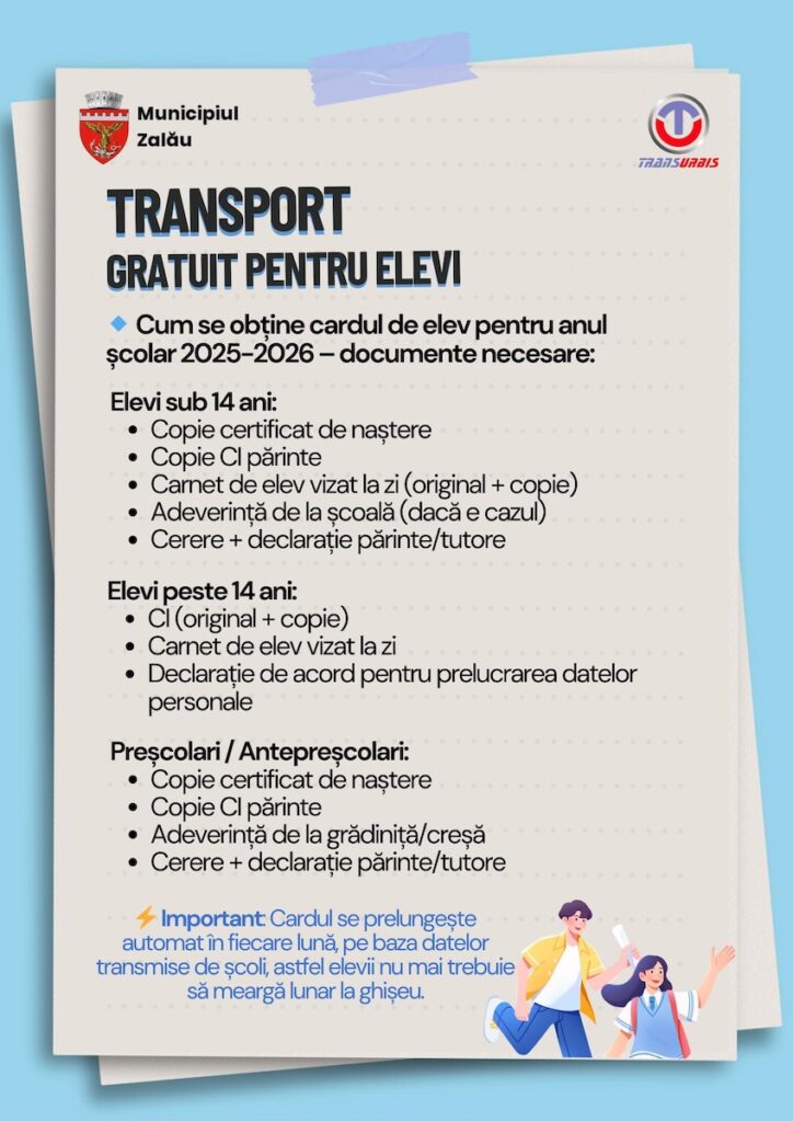 TRANSPORT GRATUIT PENTRU ELEVI asigurat de Primăria Municipiului Zalău și Consiliul Local Zalău