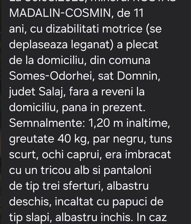 ALERTĂ COPIL DISPĂRUT. Distribuie pentru a-l găsi cât mai repede!