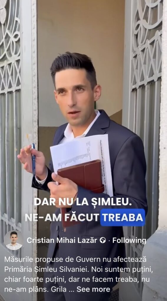 Cristian Lazăr, primar Șimleu Silvaniei: „Măsurile propuse de Guvern privind reducerea personalului nu afectează Primăria Șimleu Silvaniei.”
