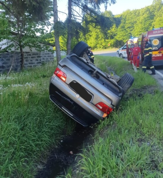 S-a rāsturnat cu maşina într-o râpā, rămânând suspendat pe arbori
