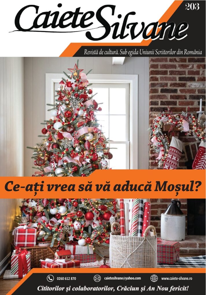 A apărut ediția online a nr. 203 (decembrie 2021) al revistei „Caiete Silvane”, publicație editată de Centrul de Cultură și Artă al Județului Sălaj, sub egida Uniunii Scriitorilor din România, Consiliului Județean Sălaj și Primăriei municipiului Zalău. Detalii pe caiete-silvane.ro. Ediția tipărită va fi distribuită începând de luni, 13 decembrie 2021. Sărbători fericite tuturor cititorilor și colaboratorilor!