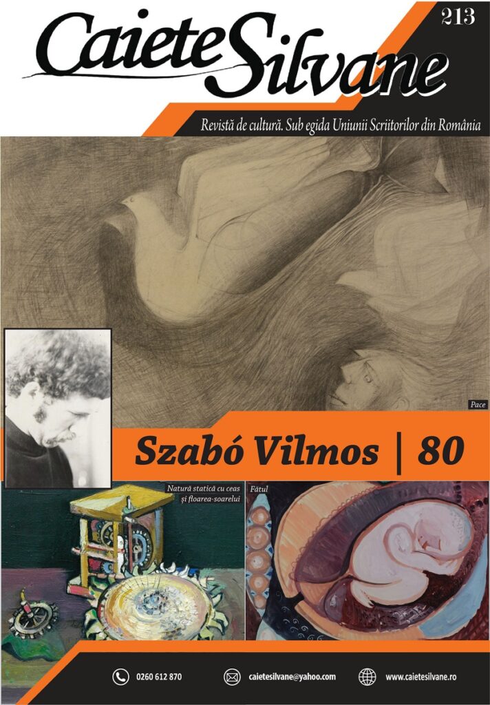A apărut ediția online a nr. 213 ( octombrie 2022) al revistei „Caiete Silvane”, publicație editată de Centrul de Cultură și Artă al Județului Sălaj, sub egida Uniunii Scriitorilor din România, Consiliului Județean Sălaj și Primăriei municipiului Zalău. Detalii pe caietesilvane.ro. Ediția tipărită va fi distribuită începând din 14 octombrie. Lectură plăcută!