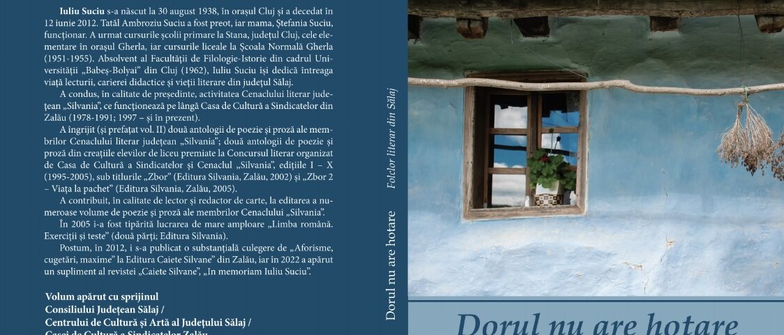 La Editura „Caiete Silvane”, a apărut, cu sprijinul Consiliului Județean Sălaj, Centrului de Cultură și Artă al Județului Sălaj și Casei de Cultură a Sindicatelor din Zalău, cartea postumă: Iuliu Suciu, „Dorul nu are hotare. Folclor literar din Sălaj”, cu un argument de Valeria Suciu și o prefață de Marcel Lucaciu.
