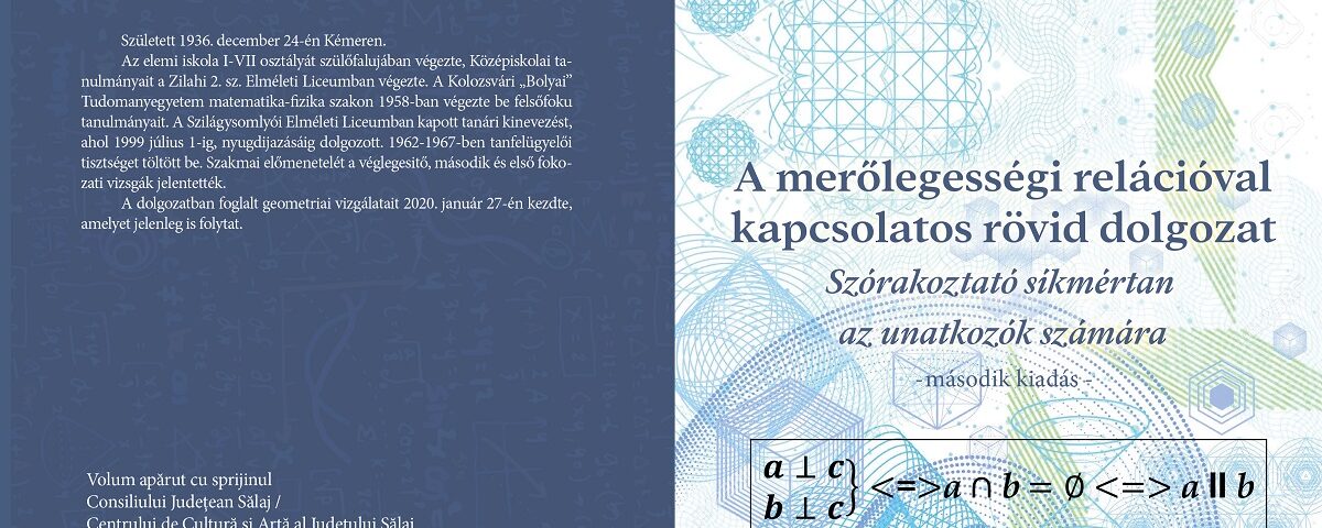 La Editura „Caiete Silvane”, în colecția „Didactica”, a apărut ediția a II-a, revizuită și adăugită, a volumului semnat de Varga Lajos, „A merőlegességi relációval kapcsolatos rövid dolgozat. Szórakoztató síkmértan az unatkozók számára” („Scurtă lucrare în legătură cu relaţia de perpendicularitate. Geometrie plană distractivă pentru cei care se plictisesc”).