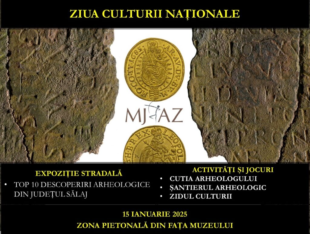 Miercuri, 15 ianuarie, între orele 9.00 și 17.00, Muzeul Judeţean de Istorie şi Artă Zalău va organiza, în zona pietonală din fața instituției, o expoziție dedicată celor mai importante 10 descoperiri arheologice din județul Sălaj, din perioada Neoliticului până în Evul Mediu. Totodată, cei mici vor avea ocazia să participe la diverse activități și jocuri tematice, menite să le stârnească creativitatea și curiozitatea.