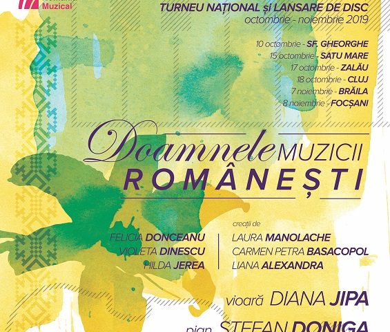 În perioada 10 octombrie – 8 noiembrie 2019, doi dintre cei mai activi și valoroși tineri muzicieni români, violonista DIANA JIPA şi pianistul ŞTEFAN DONIGA, vor susține un turneu național de promovare a celui mai recent proiect cultural și produs discografic care le aparține, intitulat „Doamnele muzicii românești”.