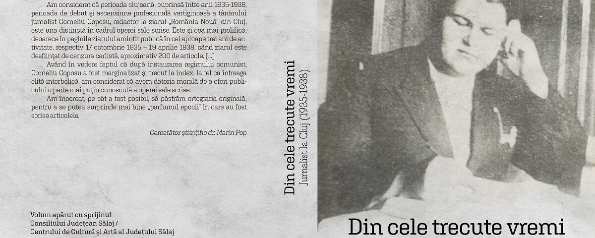 Apărut în colecția „Restituiri”, volumul „Din cele trecute vremi. Jurnalist la Cluj (1935-1938)” a fost alcătuit şi îngrijit de cercetătorul ştiinţific dr. Marin Pop, care semnează și studiul introductiv. „Prezentul volum continuă munca deosebită a reputatului istoric clujean Mircea Popa, care a realizat o selecţie de articole din întreaga operă scrisă a lui Corneliu Coposu, între 19351947 şi după 1990, în lucrarea Corneliu Coposu, «Semnele timpului». Am considerat că perioada clujeană, cuprinsă între anii 19351938, perioada de debut şi ascensiune profesională vertiginoasă a tânărului jurnalist Corneliu Coposu, redactor la ziarul «România Nouă» din Cluj, este una distinctă în cadrul operei sale scrise. Este şi cea mai prolifică, deoarece în paginile ziarului amintit publică în cei aproape trei ani de activitate, respectiv 17 octombrie 1935 – 19 aprilie 1938, când ziarul este desfiinţat de cenzura carlistă, aproximativ 200 de articole. (…) Având în vedere faptul că după instaurarea regimului comunist, Corneliu Coposu a fost marginalizat şi trecut la index, la fel ca întreaga elită interbelică, am considerat că avem datoria morală de a oferi publicului o parte mai puţin cunoscută a operei sale scrise. (Marin Pop)