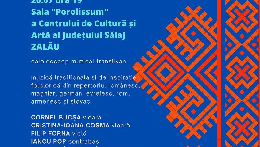 26 iulie, ora 19, ZALĂU, Sala „Porolissum” a Centrului de Cultură și Artă al Județului Sălaj