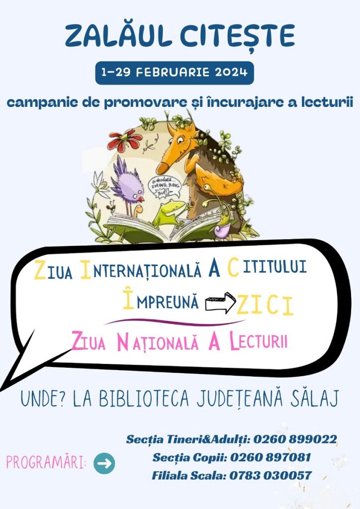 Biblioteca Județeană „I.S. Bădescu” Sălaj, instituție de cultură aflată în subordinea Consiliului Județean Sălaj, dă startul celei mai ample campanii de promovare și încurajare a lecturii în rândul copiilor, tinerilor și adulților deopotrivă: Zalăul Citește! „Suntem deja la a treia ediție a unui eveniment pe care dorim să îl transformăm în cea mai frumoasă poveste!”, a declarat Mariana Marian, managerul Bibliotecii Județene. „De câțiva ani, februarie este luna în care citim mai mult ca niciodată! Începem cu Ziua Internațională a Cititului Împreună și continuăm cu Ziua Națională a Lecturii, două momente importante atât pentru biblioteci, cât și pentru cititorii noștri, iar noi vrem să le sărbătorim cum se cuvine, alături de publicul nostru. Vom avea sesiuni de lectură, activități diverse, multe surprize, dar și premierea celor mai fideli cititori, pe 15 februarie”, a adăugat managerul BJ Sălaj. Vă așteptăm cu mic și mare, să #CitimÎmpreună, până în ultima zi din februarie!