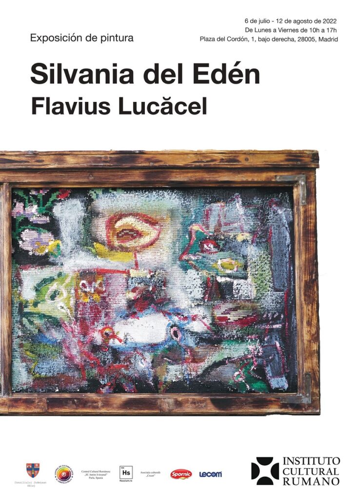 Expoziția artistului vizual Flavius Lucăcel „Edenul din Silvania” va fi inaugurată în Galeria ICR Madrid miercuri, 6 iulie, la ora 19:00, în prezența artistului. Va fi deschisă în perioada 6 iulie – 12 august, de luni până vineri, între 10:00 și 17:00.