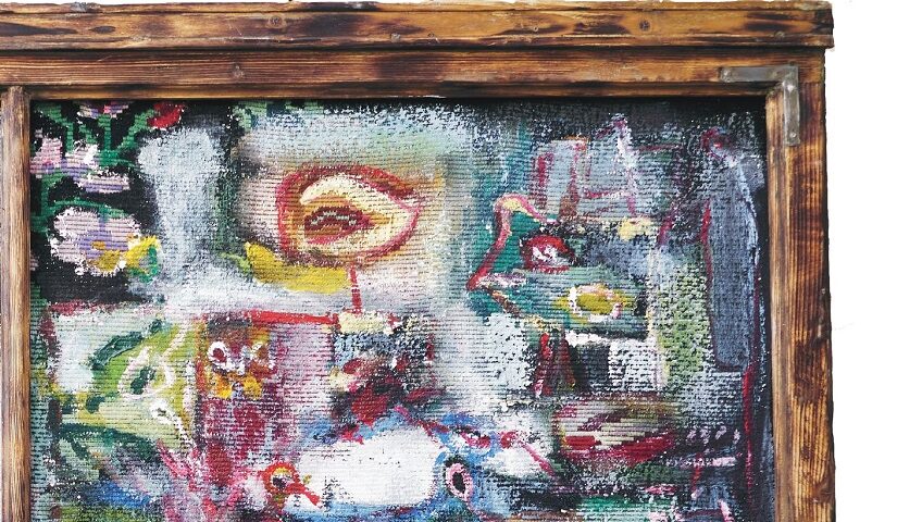 Tablourile expuse sunt practic rame de ferestre recondiționate care încadrează obiecte textile reconvertite: cămăși și cuverturi, vestoane și cearșafuri, ștergare și covoare de perete.
