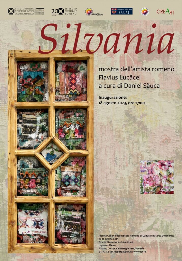 Institutul Român de Cultură şi Cercetare Umanistică de la Veneţia organizează, în colaborare cu Centrul de Cultură şi Artă al Judeţului Sălaj, Consiliul Judeţean Sălaj şi Asociaţia Culturală Creart Zalău, în perioada 18–26 august 2023, expoziţia de artă vizuală „Silvania”, în spaţiul Piccola Galleria al institutului, care cuprinde lucrări ale artistului Flavius Lucăcel, curator Daniel Săuca.