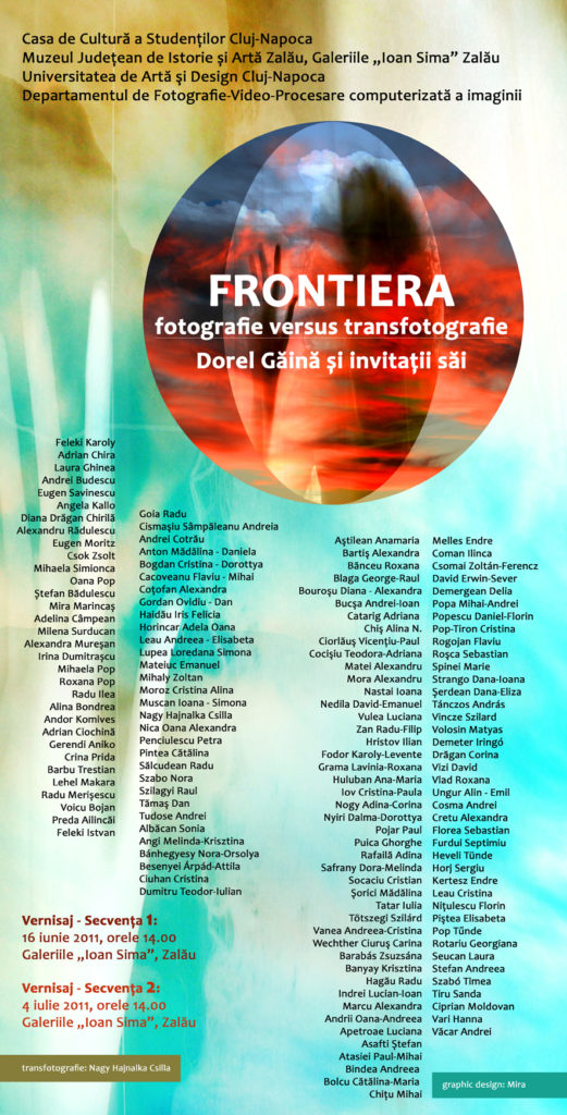 Expozitia este organizata de Casa de Cultura a Studentilor din Cluj-Napoca, Muzeul Judetean de Istorie si Arta Zalau, Universitatea de Arte si Design din Cluj prin departamentul Fotografie, Video, Procesare computerizata a imaginii. Publicul din Zalau va putea urmari o selectie ingenioasa din rezultatele cautarilor artistice ale pasionatilor de fotografia artistica si transfotografie. Artele vizuale si tehnologiile informationale in interactiunea lor determina o varietate de genuri de abordare a imaginii virtuale, precum si o serie de expresivitati specifice acestor tehnologii asimilate cu o deosebita creativitate de artistii contemporani. Limitele acestei noi tehnici de gandire si expresie vizuala sunt zi de zi extinse odata cu aparitia noilor tehnologii ale genului. In acest context, deci la frontiera imaginii intre perceptie, gandire si expresie vizual-artistica, se pare foarte incitanta traiectoria imaginii vizuale de la un artist la altul, sau altfel spus sansele de manifestare a conceptelor cum ar fi imaginea, forma, continutul, mesajul, efectul, stilul, motivul, simbolul, comunicarea vizuala in general, raportat la premisele asimilate de filozofia si istoria artei si de cultura noastra vizuala, artistica.
