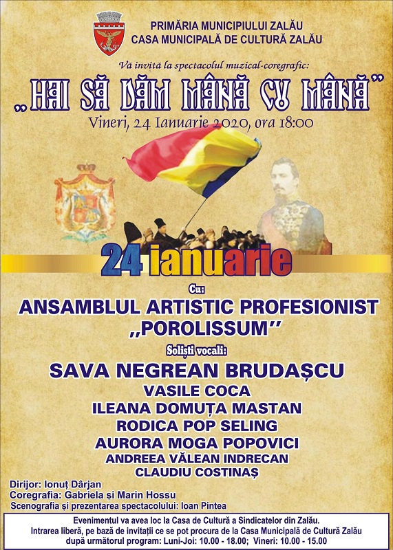 24 ianuarie, “Hai să dăm mână cu mână”, vineri, 24 ianuarie 2020, ora 18:00.