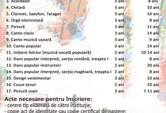 | 11. Inițiere folclor (muzică vocală populară) | 2 ani | 10-14 ani |