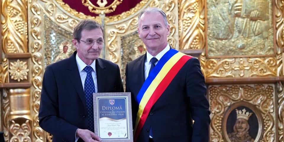 În spațiul încărcat de frumusețe și spiritualitate al Catedralei Episcopale „Sfânta Vineri” din Zalău, președintele Academiei Române, prof. univ. dr. Ioan-Aurel Pop, a primit, astăzi, din partea președintelui Consiliului Județean Sălaj, Dinu Iancu-Sălăjanu, titlul de „Cetățean de onoare al județului”.