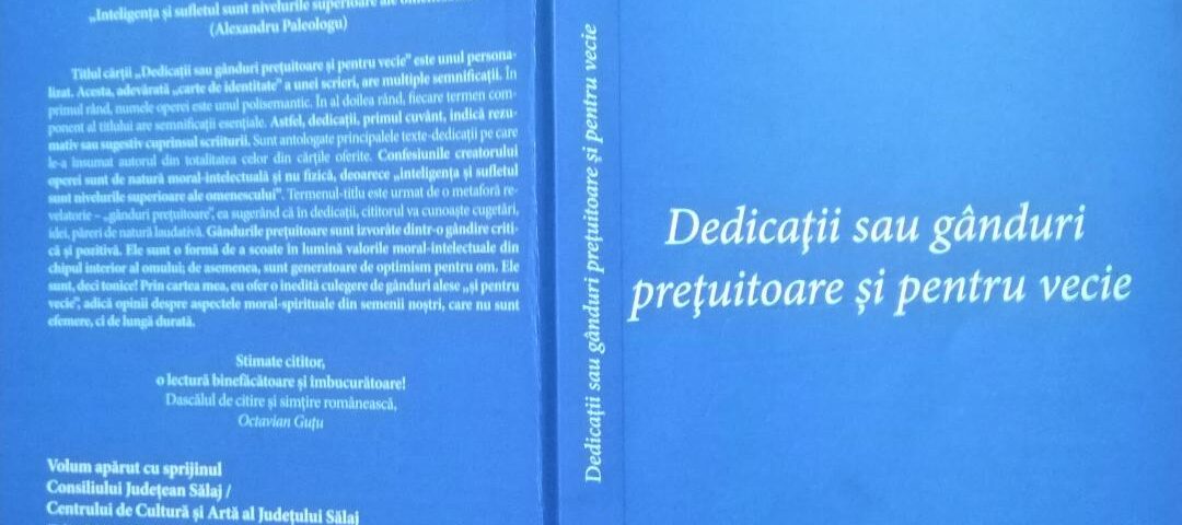 Aproape de mijlocul lunii lui Undrea 2023, a ieșit de sup tipar cartea „Dedicații sau gânduri prețuitoare și pentru vecie”, scrisă de către profesorul șimleuan Octavian Guțu. Acesta este al treilea volum al său apărut în Colecția „Scriitori sălăjeni” a Editurii „Caiete Silvane” din Zalău, condusă de către domnul Daniel Săuca. Redactor al cărții este Alexandru-Bogdan Kürti, corectura aparține Oanei-Maria Barariu-Săvuș, culegerea textului lui Dorin Ciorba și Emanuil-Marius Hiriș, iar coperta și tehnoredactarea lui Major Lóránd de la „Color Print” Zalău.