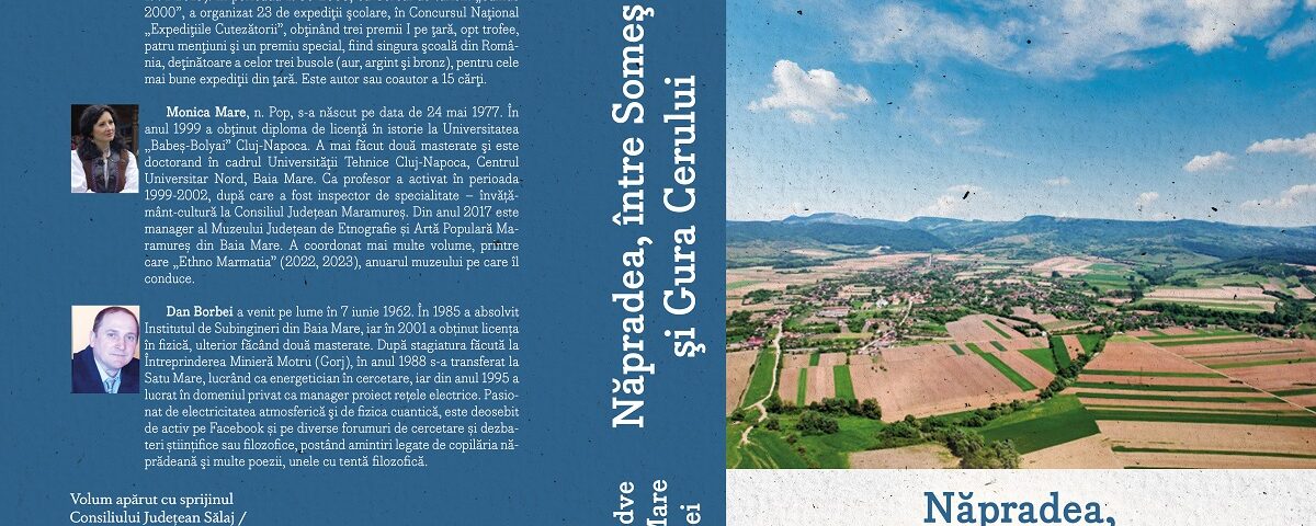 Sâmbătă, 9 noiembrie 2024, cu începere de la ora 13, la Căminul Cultural „Mihai Eminescu” din Năpradea, va avea loc lansarea volumului „Năpradea, între Someş şi Gura Cerului”, scris de Aurel Medve, Monica Mare și Dan Borbei. Cartea a apărut în colecţia „Monografii” a Editurii „Caiete Silvane”, cu sprijinul Consiliului Județean Sălaj şi al Centrului de Cultură şi Artă al Judeţului Sălaj. Prefața volumului este semnată de prof. dr. Teodor Ardelean, director al Bibliotecii Judeţene „Petre Dulfu” Baia Mare, iar postfața de dr. Camelia Burghele, etnolog – Muzeul Judeţean de Istorie şi Artă Zalău.