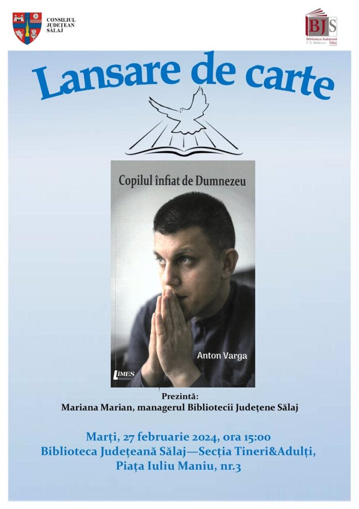 Biblioteca Județeană „I.S. Bădescu” Sălaj, instituție de cultură aflată în subordinea Consiliului Județean Sălaj, vă invită la un nou eveniment literar: lansarea volumului autobiografic „Copilul înfiat de Dumnezeu”, semnat de Anton Varga.