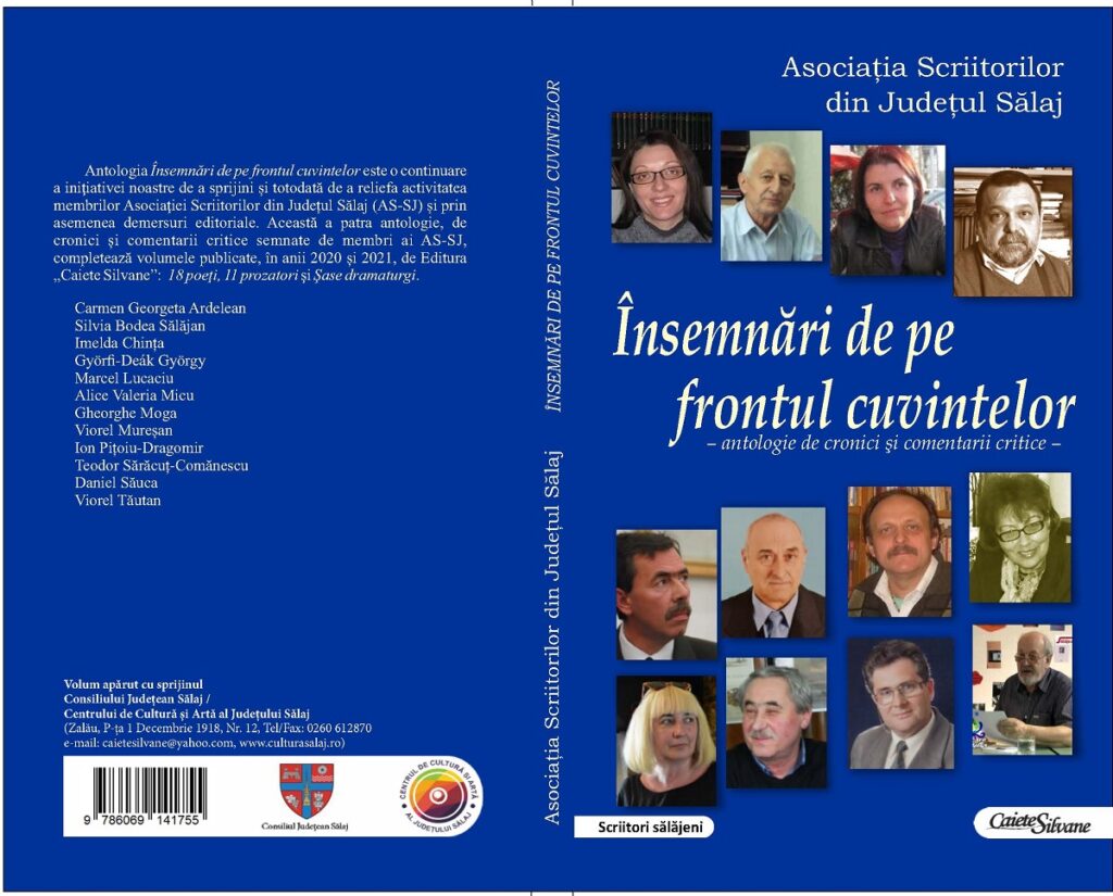 Antologia „Însemnări de pe frontul cuvintelor” este o continuare a iniţiativei noastre de a sprijini și totodată de a reliefa activitatea membrilor Asociaţiei Scriitorilor din Județul Sălaj (AS-SJ) și prin asemenea demersuri editoriale. Această a patra antologie, de cronici și comentarii critice semnate de membri ai AS-SJ, completează volumele publicate, în anii 2020 și 2021, de Editura „Caiete Silvane”: „18 poeţi”, „11 prozatori” şi „Şase dramaturgi”.