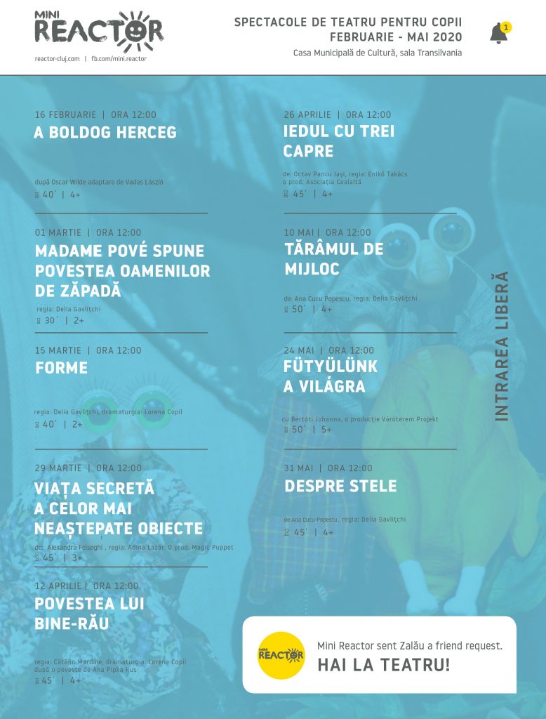 Începând din 16 februarie şi până la final de mai vă aşteptăm cu multe spectacole noi şi inedite, care garantăm că o să vă stârnească şi mai mult apetitul pentru teatru independent!