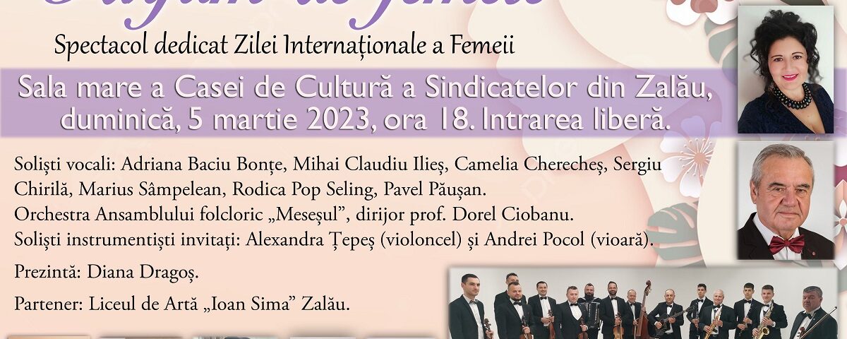 Sala mare a Casei de Cultură a Sindicatelor din Zalău, duminică, 5 martie 2023, ora 18. Intrarea liberă.