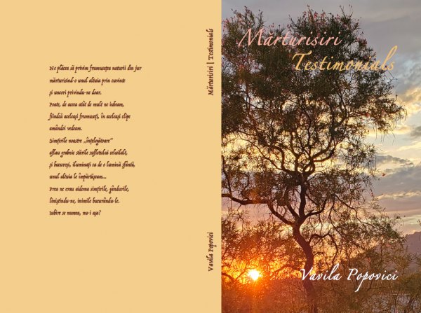 Iată însă că, prin proaspătul său volum de versuri – bilingv – ,,Mărturisiri – Testimonials” (Made in USA, LULU ENTERPRISES, 2021), Vavila Popovici amplifică aria de cuprindere, mărturisindu-se în fața unui număr de cititori imposibil de contabilizat pe cele două mari continente: America și Europa. Iar mărturisirile sale sunt raționale (,,Pleci năuc (…) / luând cu tine și țara și continentul / într-o valiză, sau mai multe / vrând să o răstorni într-o altă lume, / cu suflet cu tot”). Dar și emoționale, cu iz de spovedanie: ,,Încă mai apăs clapele albe și negre ale orgii, / să aud în jur sunetul ei îngeresc…”