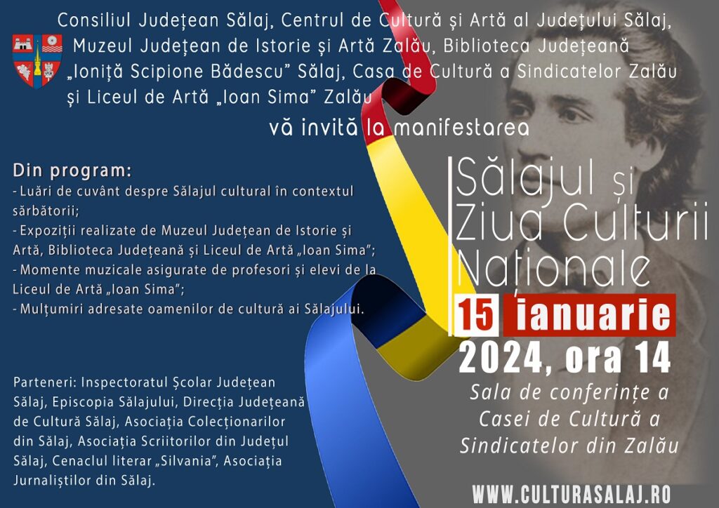 Consiliul Județean Sălaj, Centrul de Cultură și Artă al Județului Sălaj, Muzeul Județean de Istorie și Artă Zalău, Biblioteca Județeană „Ioniță Scipione Bădescu” Sălaj, Casa de Cultură a Sindicatelor Zalău și Liceul de Artă „Ioan Sima” Zalău vă invită la manifestarea