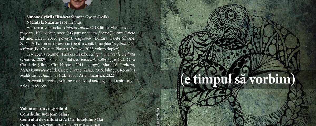 A apărut un nou volum la Editura „Caiete Silvane”, în colecția Poesis: „(e timpul să vorbim)”, de Simone Györfi. Cartea va fi lansată joi, 28 martie 2024, în Sala „Porolissum” a Centrului de Cultură și Artă al Județului Sălaj, în cadrul celei de-a 16-a ediții a Zilelor revistei „Caiete Silvane”.