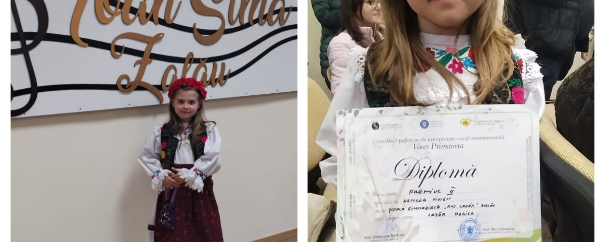 Ieri, în data de 27 martie, s-a desfășurat la Liceul De Arte „Ioan Sima” Zalău o nouă ediție a Concursului Județean de Interpretare „Voces Primavera” din cei. peste 40 de participanți prezenți la concurs la secția canto muzica populara Vivien Natașa Hendea a obținut premiul II.