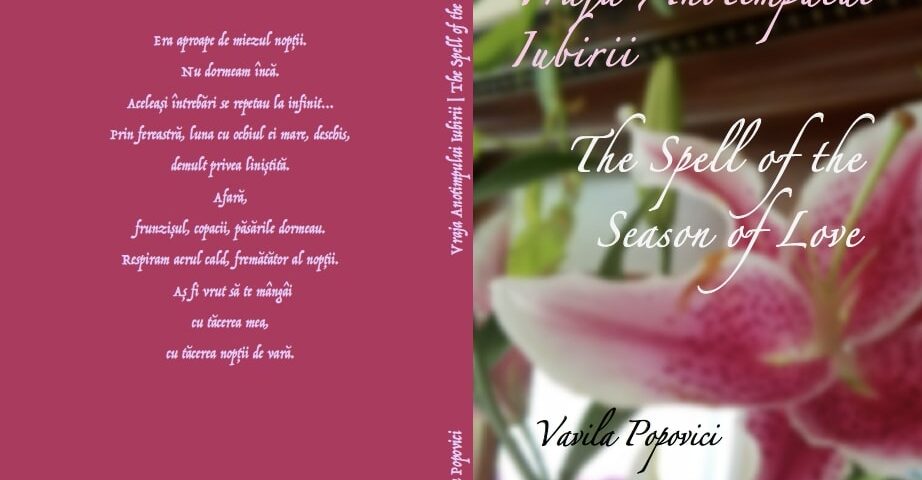 Am primit acum câteva zile, un nou volum bilingv, de poezie, semnat de Vavila Popovici. Este cea de a 62-a carte a distinsei doamne, un număr impresionant, cele mai numeroase fiind cărțile de versuri. O dată la două-trei luni, scriitoarea ne trimite, din Carolina de Nord, vești despre dorurile și visările ei. „Vraja anotimpului iubirii” este o lungă și melancolică scrisoare, cu valoare de incantație, primită prin poștă. Nu prin poșta electronică.