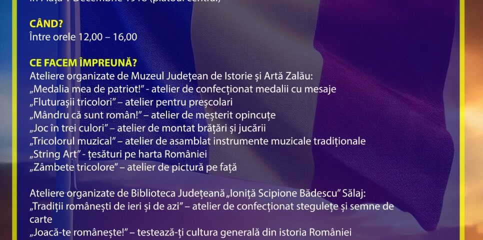 Muzeul Județean de Istorie și Artă Zalău, instituție publică de cultură aflată sub autoritatea Consiliului Județean Sălaj, în parteneriat cu Biblioteca Județeană „Ioniță Scipione Bădescu” Sălaj, vă invită să participați la evenimentele organizate cu ocazia zilei de 1 Decembrie.