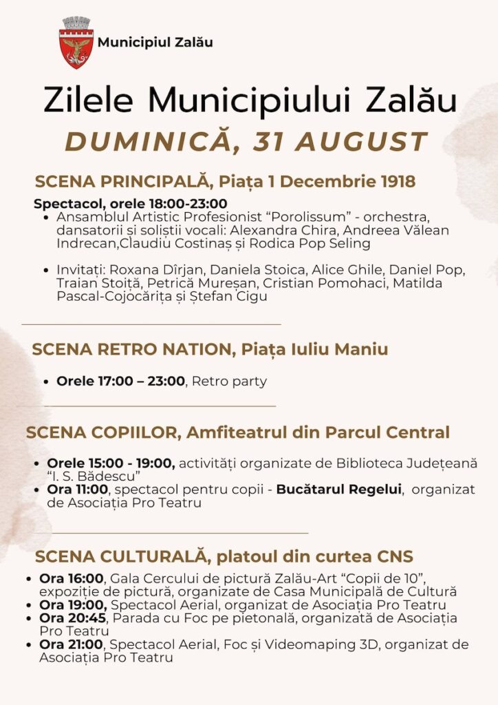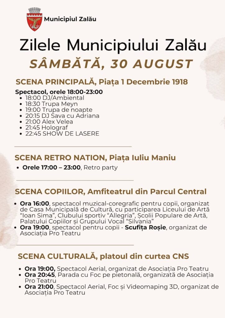 Programul evenimentului poate fi consultat în fotografiile atașate, iar detalii despre eveniment găsiți pe pagina Zilele Zalăului 2025