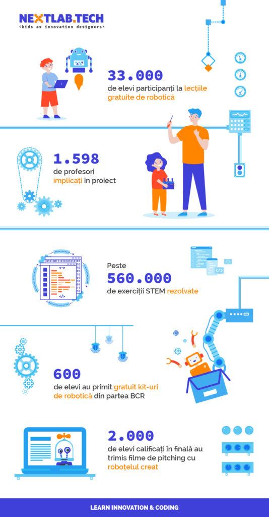 33.000 de elevi, cu vârste cuprinse între 8 și 16 ani, din întreaga țară, au participat în 2020 la concursul de robotică NEXTLAB.TECH, organizat alături de BCR;