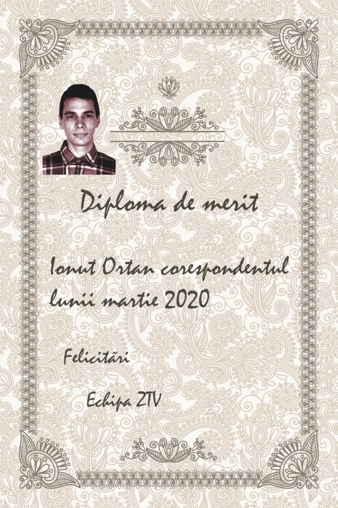 Ionut Ortan a a devenit corespondentul lunii martie 2020, asta dupa ce a realizat mai multe materiale video, care au fost postate pe siteul ZTV. Chiar daca este o perioada periculoasa Ionut a fost prezent la evenimente si a filmat chiar LIVE unele dintre ele.