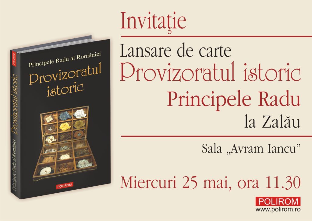 Secretariatul Regal are placerea sa va trimita alaturat invitatia la lansarea cartii „Provizoratul istoric” scrisa de ASR Principele Radu al Romaniei. Evenimentul va avea loc in ziua de miercuri, 25 mai
