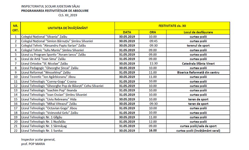 Programul festivitatilor de sfarsit de an scolar