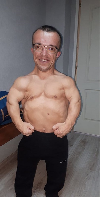trist este atunci cand viata ne priveaza de lucrurile normale. Acest lucru i s-a intamplat si tanarului Codrin Florin Boldor, care a crescut doar la inaltimea de 130 de cm, din cauza unei boli genetice numite acondroplazie. La aceasta inaltime din pacate nu poate sa sa scoata bani de la bancomat, sa joace fotbal cu prietenii, sa escaladeze pe munte si lista poate continua, insa el nu a renuntat si s-a inscris la sala de fitness, desi nu poate folosi aproximativ 80% din aparate asa cum o fac toti ceilalti. Cea mai mare provocare pentru instructorul de fitness a fost sa faca un program individualizat pentru un adult asa de mic, deoarece picioarele si bratele sunt scurte, iar aparatele din sala sunt proiectate sa fie folosite de persoane care au o inaltime de peste 130 cm. Daca primul program a fost greu de realizat, al doilea a fost si mai greu deoarece trebuiau introduse exercitii si aparate noi, asa ca tot ce apare in cartile de specialitate trebuiau modificate si adaptate la acest handicap.